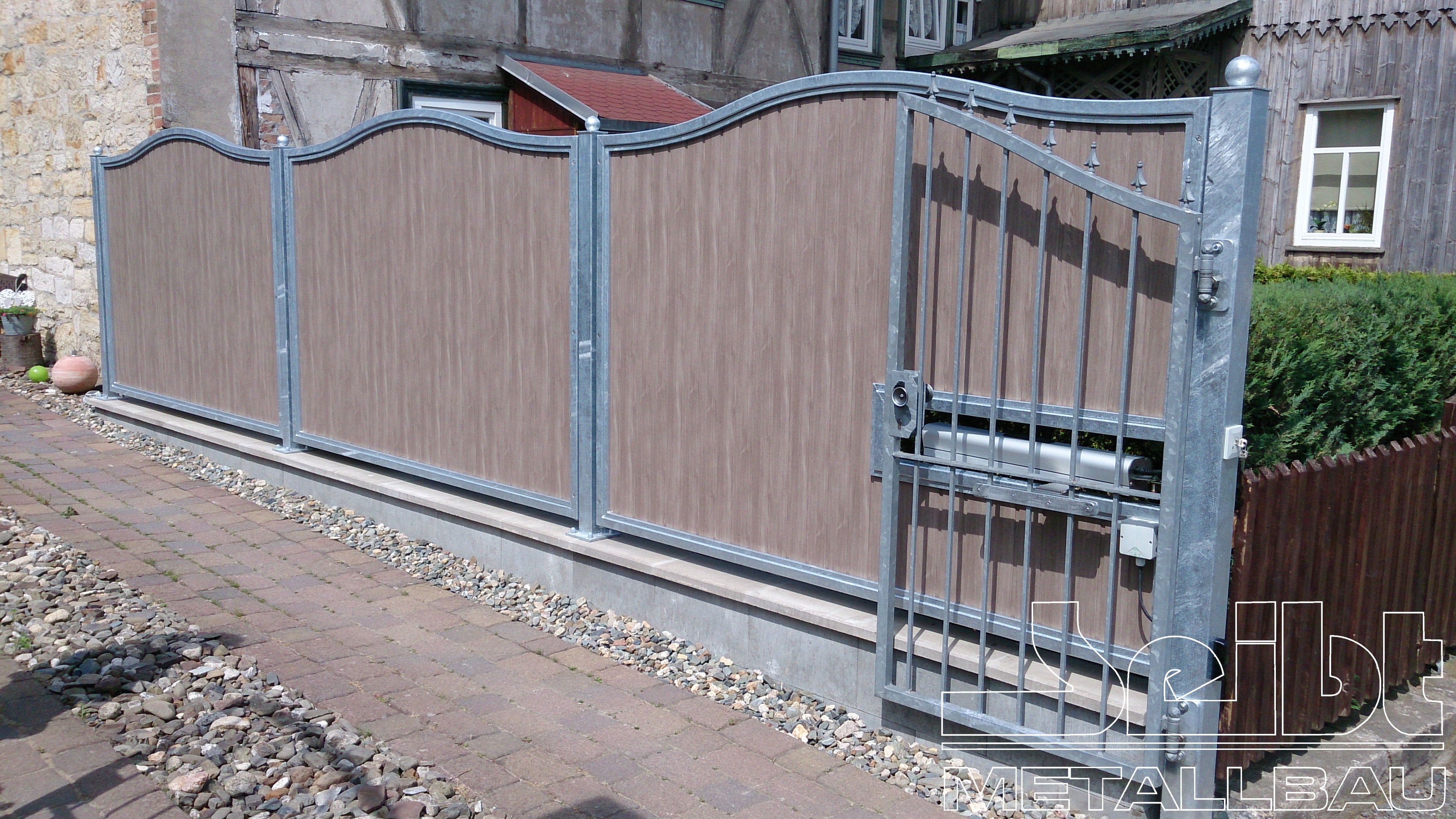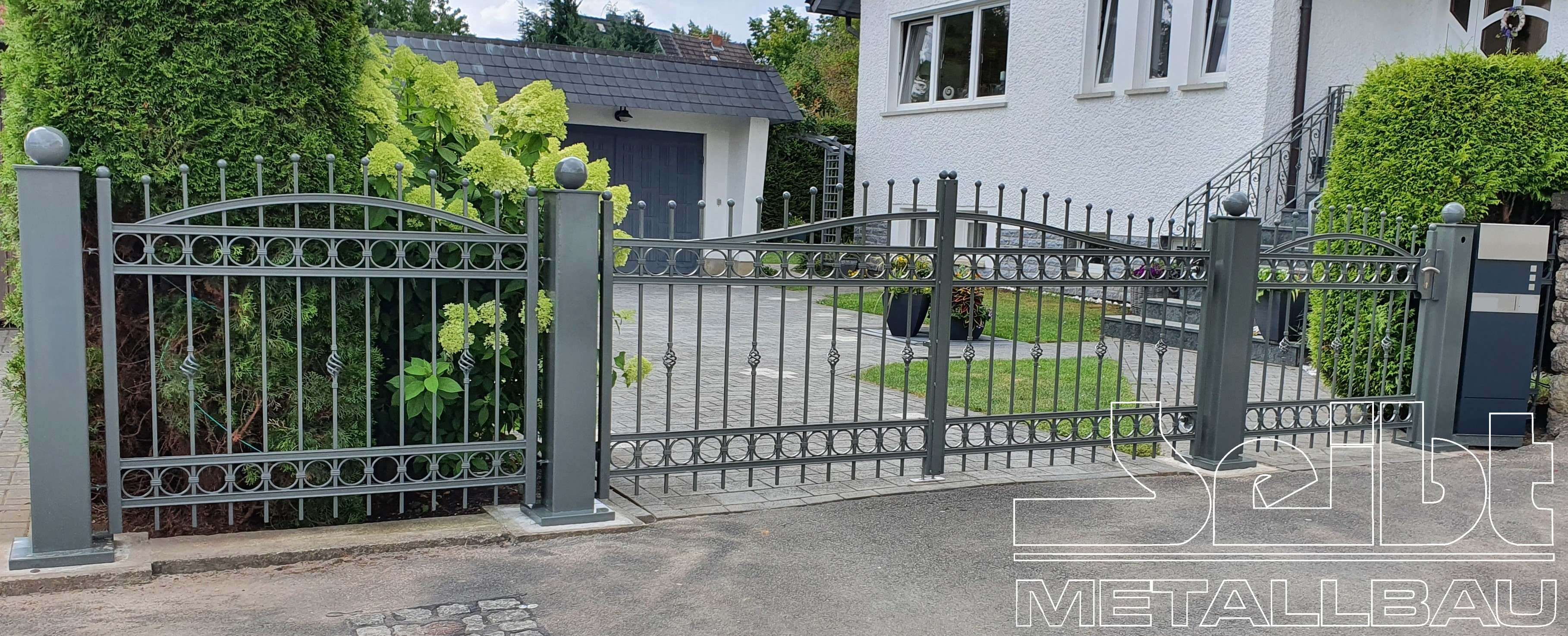 Seit unser Firmengründung im Jahr 1996 fertigen wir nach Ihren Wünschen und Vorgaben nach Aufmaß passgenaue Tore z. Bsp. mit modernen Antrieben, Zaunanlagen, Innen – und Außentreppen, Geländer in Edelstahl, Stahl verzinkt und pulverbeschichtet, Aluminium oder mit Kunststofffüllungen.